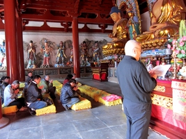 | 仏教墓塔研究会海外研修の第一回目です。 私が昨年経験いたしました五台山での感激を、多くの石材人に味わって頂きたく企画致しました。 初日は『大同』までの移動だけに終わり、ホテルで結団式を行ないました。 自己紹介で各位から「仏教墓塔研究会との御縁が有益であった」との お褒めの言葉を頂戴し身に余る光栄です。 二日目 ![]() 最初の訪問地は『雲岡石窟』です。 石窟には北魏時代の見事な石仏が沢山残っています。 一番奥には五重石塔も有りますが、ここまでは観光客も来ません。 我々は石材人の有能な研究者ですから、これを外す訳にはいきません。 定番の大仏(二十窟)前で集合写真です。 石窟は、色彩や彫刻が見事に残り、世界遺産に相応しい感動を与えてくれました。 山西省は仏塔の宝庫で見るべきものが多く大変参考に成ります。 恒山の町に入って圓覚寺へ行ったのですが、境内の工事中の為に入れません。 扉を抉じ開けて何とか入る事が出来ました。 寺の周囲は下町で貧しく環境も劣悪です。 全体に悪臭が漂い汚物も至る所に捨てられています。 表通りにまだまだ及ばない裏通りの一面を垣間見ました。 懸空寺は字の如く空中に浮かぶ天空の寺です。 私が二年前に来た時は露店がずらっと並んでいたのですが今は一軒もありません。 今にも落ちそうな簡単な木造の崖っぷちの境内を恐る恐る進みます。 支える杭の七割が岩盤に喰い込んでいると言われていますが大変な恐怖を感じます。 本堂に御参りをして振り返って下を見ますと、六十メートルの高さからの遠望は絶景と恐怖の一体です。 五台山へ進む峠道が雪で通行不能の為に迂回をして夜八時宿舎到着となりました。 三日目 ![]() 目を覚ますと、残念な事に曇天の霧雨模様です。 気温は思ったより暖かく七度です。 真冬並みと言う事で厚着をしているだけに暑く感じます。 五台山中心部の台懐鎮寺廟群参拝の為に、 高度が一番高い所から下へ向けて出発です。 五台山は文殊菩薩の霊地です。 至る所で獅子に座した文殊菩薩を拝む事が出来ます。 百八段の滑りそうで怖い階段を下りて顕通寺へ進みます。 いずれも写真に撮りたくなる対象物の連続で感動の連続です。 ここも日本人僧の慧鍔が八百六十三年に訪れています。 お墓を知る意味でも、仏塔の源を味わう事は大切です。 五台山のシンボルは何と言っても塔院寺の大白塔です。 七十五メートルの舎利塔は、五台山の何処からでも見る事が出来ます。 百八の摩尼車が有りますので、 全員で願文と経文を唱えながら回転させて堂内を一周しました。 三塔寺は三基の蔵式塔(ラマ塔)が立っています。 ここの本堂の文殊像に向かって勤行回向をさせて頂く許可が降りました。 福原が導師になって勤行を厳修し、全員で般若心経を読誦奉納いたしました。 堂内に声高な経典が響き渡り、文殊菩薩の心へ届けとばかり祈りました。 仏教墓塔研究会と参加者各家の繁栄と追善供養も合わせてお勤め致しました。 羅睺寺の開花現仏が、幸運な事に見られる時間に遭遇しました。 しかし、一瞬の出来事で終ってしまい、期待したほどの満足が得られません。 蓮華が回転しながら花弁が開き、内から釈尊の童子が現れるのです。 万仏閣は民間信仰の寺で受験の祈願寺です。 中国の受験生が合格祈願に大勢やって来ます。 我々も倣って五体投地礼や線香を持っての三拝礼をしたり行道をしました。 郷に入れば郷に従う合掌礼拝を手厚く行なってみました。 真似の出来ない敬虔な仏教徒が大勢お参りをしている姿には、傍へも寄れない厳粛さを感じます。 碧山寺にある字塔も有名で、僧の墓塔も沢山あり、何れも珍しく大変参考に成りました。 七仏寺では、七個の蓮華蝋燭を塔前に供えれば功徳が有ると言う事で、数人が御供えをされました。 立派な白亜の七重塔が聳え立っている姿も圧巻です。 善財寺は、最近立てられた七重や五重塔ですが、林立している姿は壮観です。 普化寺は寺前の大彫刻壁が有名です。福禄寿三星共照の刻みなどがあります。 五台山は黄廟九ケ寺と青廟三十七ケ寺がある聖地であり、仏教とラマ教が凌ぎあう所だけに、 舎利塔とラマ塔が混在していて面白いのです。 四日目 朝日に映える高原の竹林寺へ行きました。 ここへは霊仙三蔵や円仁慈覚大師も訪れています。 我々は飛行機とバスで容易く訪問が出来ますが、 往時の先達の大変なご苦労を思うと涙が出てきます。 大修復作業中で本堂も閉じられていて中へ入って拝めません。 お願いをして何とか入る許可が得られました。 また、尊前での読経のお許しも頂けたのです。 大雄宝殿尊前で福原が導師になり、全員で勤行読経の厳修を行ないました。 堂内に一同の篤い思いの般若心経が響き渡りました。 有り難い事に工事中の戒壇院内部の拝観許可も降りたのです。 遠路の日本からの巡礼と知って、温かく迎えて下さる寺側の姿勢に感謝です。 広大な戒壇院は、土台の戒壇までが出来上がっていましたが、 完成